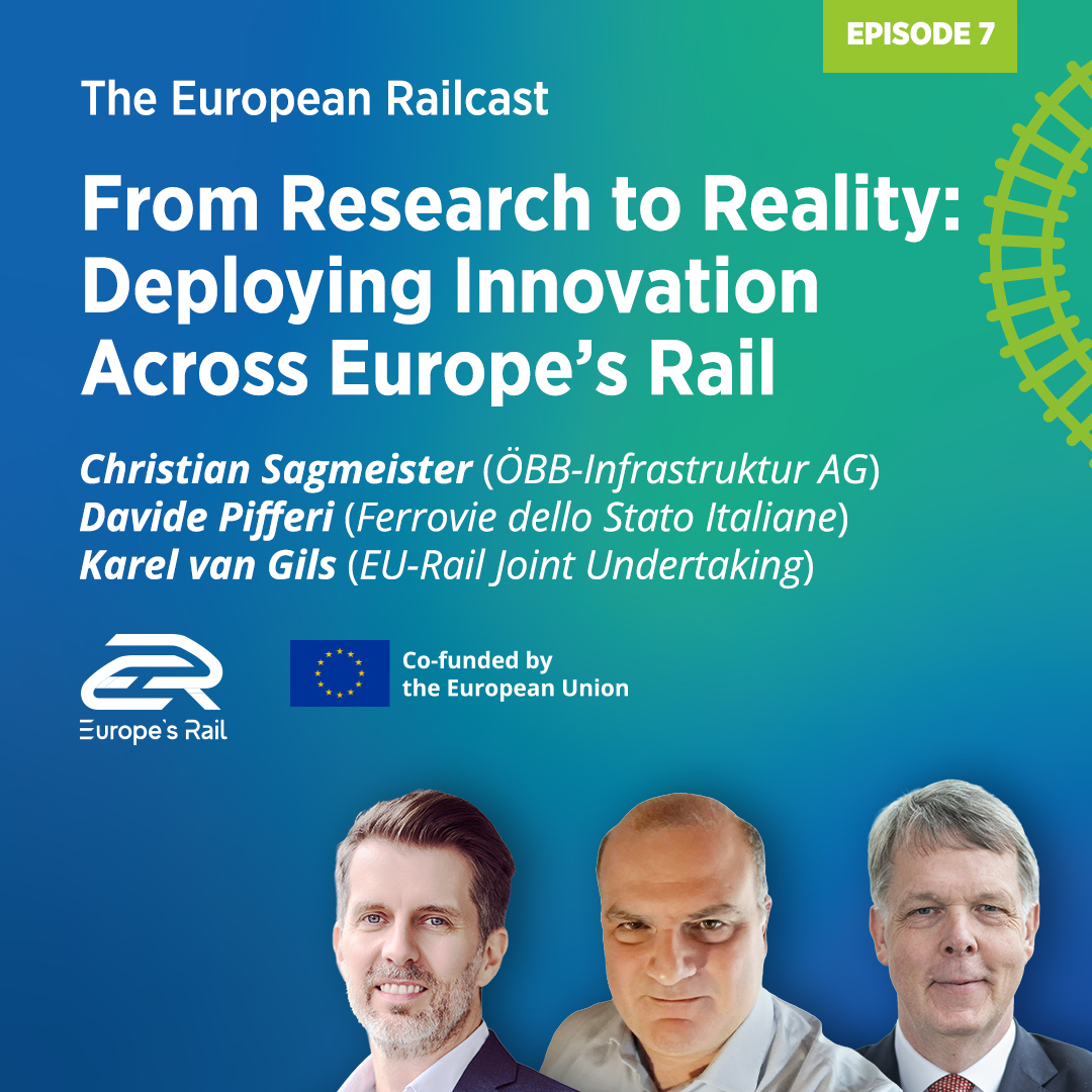 The seventh episode of the European Railcast “From Research to Reality: Deploying Innovation Across Eeurope’s Rail System” explores the transfer of innovation from research to practice, what needs to be done in order to ensure this process is smooth and how EU-Rail together with its members tackles this challenge.